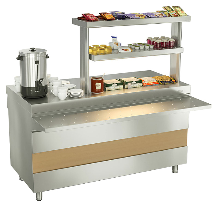Прилавок для горячих напитков ATESY Ривьера используется на предприятиях общественного питания и торговли. Корпус выполнен из нержавеющей стали. Особенности: