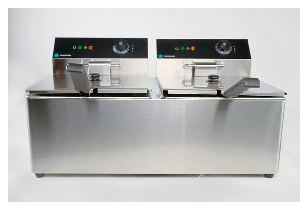Фритюрница Hurakan HKN-FD88N предназначена для приготовления широкого спектра блюд в большом объеме масла или жира на предприятиях общественного питания и торговли. Модель оснащена электромеханической системой управления и регулировкой температуры. Корпус, корзина и крышка выполнены из нержавеющей стали. В комплект поставки входят 2 корзины и 2 крышки. Дополнительные характеристики: