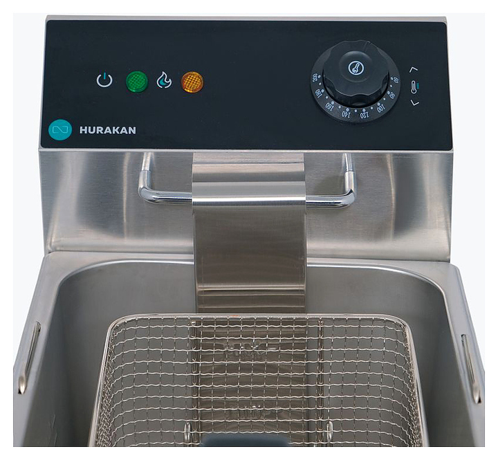 Фритюрница Hurakan HKN-FD8N предназначена для приготовления широкого спектра блюд в большом объеме разогретого до определенной температуры масла или жира на предприятиях общественного питания и торговли. Модель оснащена электромеханической системой управления и регулировкой температуры. Корпус выполнен из нержавеющей стали. В комплект поставки входит 1 корзина с крышкой. Дополнительные характеристики: