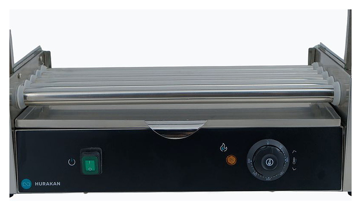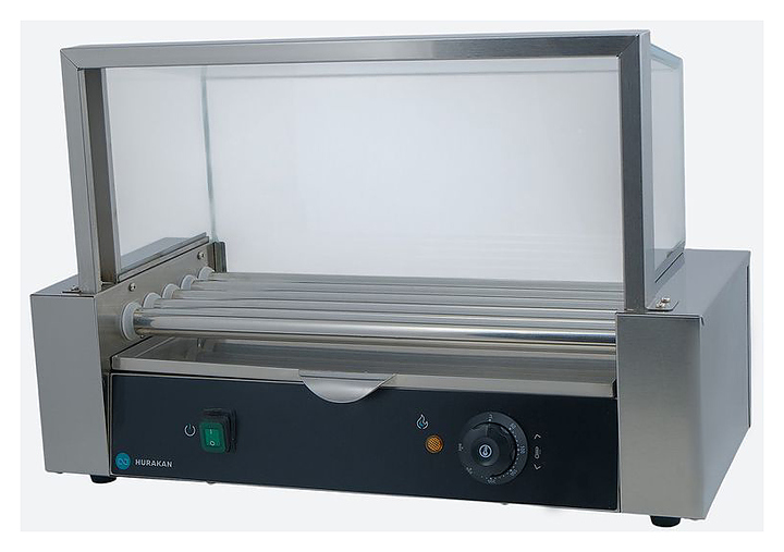 Роликовый гриль Hurakan HKN-GW5M предназначен для обжаривания сосисок и сарделек, мясных и рыбных рулетов на предприятиях общественного питания и торговли. Модель оснащена защитным экраном. Корпус и ролики выполнены из нержавеющей стали. Дополнительные характеристики: