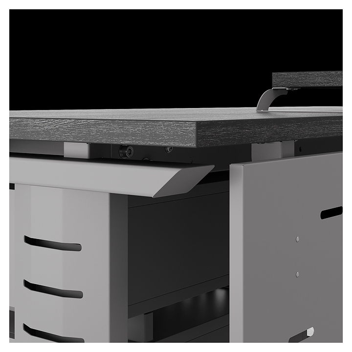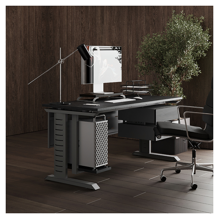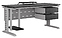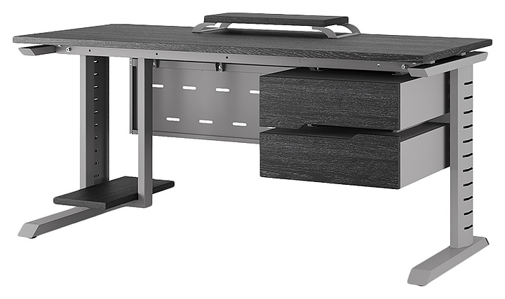 Офисный стол Кобор L2-80/80 aluminum/glazed используется в офисных помещениях и кабинетах руководителей. Модель оснащена L-образными опорами с декоративными вставками на боковинах. Каркас выполнен из металла, выкрашенного в цвет алюминиевый металлик (RAL9006), столешница – из ламинированной древесно-стружечной плиты (ЛДСП) цвета черный дуб (H3178 ST37). Опции (заказываются отдельно):