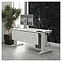 Офисный стол Кобор L2-100/70 white/premium используется в офисных помещениях и кабинетах руководителей. Модель оснащена L-образными опорами с декоративными вставками на боковинах. Каркас выполнен из металла, выкрашенного в цвет белый муар (RAL9016), столешница – из ламинированной древесно-стружечной плиты (ЛДСП) цвета белый премиум (W1000 ST9). Опции (заказываются отдельно):