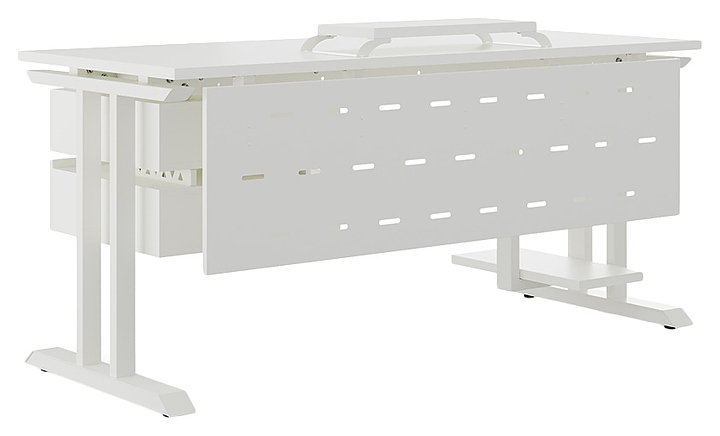Офисный стол Кобор T-180/70 white/premium используется в офисных помещениях и кабинетах руководителей. Модель оснащена T-образными опорами. Каркас выполнен из металла, выкрашенного в цвет белый муар (RAL9016), столешница – из ламинированной древесно-стружечной плиты (ЛДСП) цвета белый премиум (W1000 ST9). Опции (заказываются отдельно):
