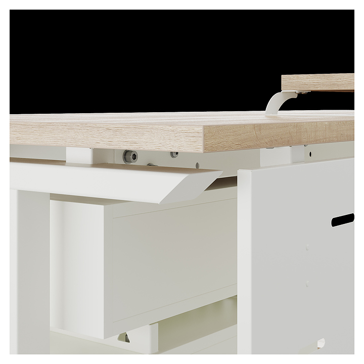 Офисный стол Кобор T-120/60 white/natural используется в офисных помещениях и кабинетах руководителей. Модель оснащена T-образными опорами. Каркас выполнен из металла, выкрашенного в цвет белый муар (RAL9016), столешница – из ламинированной древесно-стружечной плиты (ЛДСП) цвета натуральный дуб (H1180 ST37). Опции (заказываются отдельно):