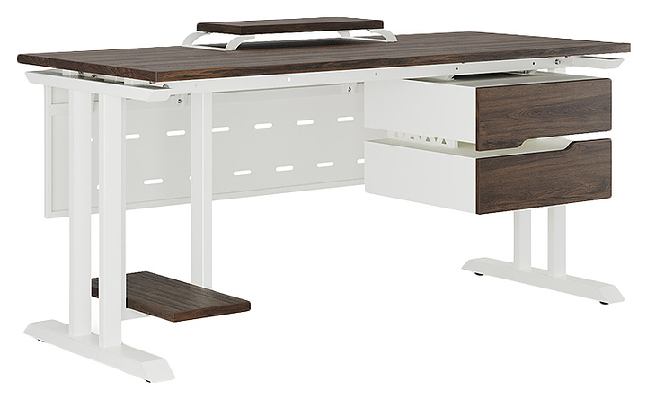 Офисный стол Кобор T-180/60 white/charlston используется в офисных помещениях и кабинетах руководителей. Модель оснащена T-образными опорами. Каркас выполнен из металла, выкрашенного в цвет белый муар (RAL9016), столешница – из ламинированной древесно-стружечной плиты (ЛДСП) цвета дуб чарльстон (H3154 ST36). Опции (заказываются отдельно):