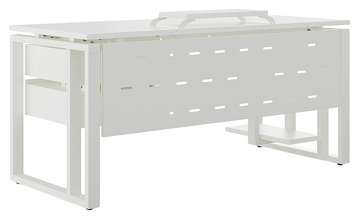 Офисный стол Кобор O2-120/60 white/premium используется в офисных помещениях и кабинетах руководителей. Модель оснащена усиленными вертикальной балкой O-образными опорами. Каркас выполнен из металла, выкрашенного в цвет белый муар (RAL9016), столешница – из ламинированной древесно-стружечной плиты (ЛДСП) цвета белый премиум (W1000 ST9). Опции (заказываются отдельно):