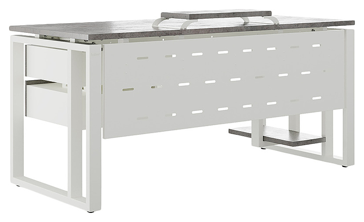 Офисный стол Кобор O2-140/70 white/chicago используется в офисных помещениях и кабинетах руководителей. Модель оснащена усиленными вертикальной балкой O-образными опорами. Каркас выполнен из металла, выкрашенного в цвет белый муар (RAL9016), столешница – из ламинированной древесно-стружечной плиты (ЛДСП) цвета бетон чикаго (F186 ST9). Опции (заказываются отдельно):