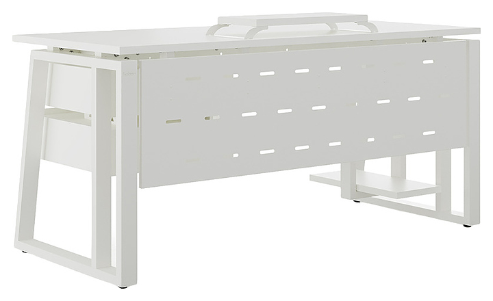 Офисный стол Кобор TS2-180/70 white/premium используется в офисных помещениях и кабинетах руководителей. Модель оснащена усиленными вертикальными балками опорами в форме наклонной трапеции. Каркас выполнен из металла, выкрашенного в цвет белый муар (RAL9016), столешница – из ламинированной древесно-стружечной плиты (ЛДСП) цвета белый премиум (W1000 ST9). Опции (заказываются отдельно):