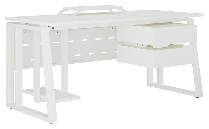 Офисный стол Кобор TS2-80/80 white/premium используется в офисных помещениях и кабинетах руководителей. Модель оснащена усиленными вертикальными балками опорами в форме наклонной трапеции. Каркас выполнен из металла, выкрашенного в цвет белый муар (RAL9016), столешница – из ламинированной древесно-стружечной плиты (ЛДСП) цвета белый премиум (W1000 ST9). Опции (заказываются отдельно):