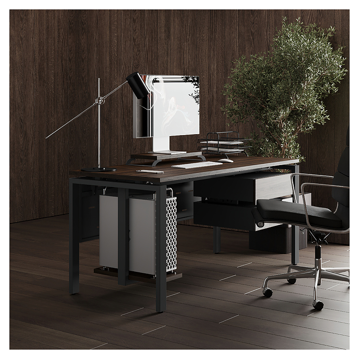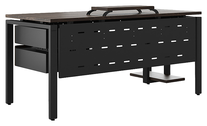 Компьютерный стол Кобор KP-160/80 black/charlston используется в офисных помещениях и кабинетах руководителей. Модель оснащена П-образными опорами. Каркас выполнен из металла, выкрашенного в цвет черный муар (RAL9005), столешница – из ламинированной древесно-стружечной плиты (ЛДСП) цвета дуб чарльстон (H3154 ST36). Опции (заказываются отдельно):