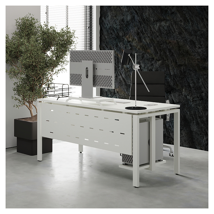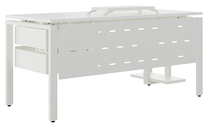 Компьютерный стол Кобор KP-160/70 white/premium используется в офисных помещениях и кабинетах руководителей. Модель оснащена П-образными опорами. Каркас выполнен из металла, выкрашенного в цвет белый муар (RAL9016), столешница – из ламинированной древесно-стружечной плиты (ЛДСП) цвета белый премиум (W1000 ST9). Опции (заказываются отдельно):