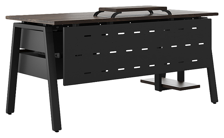 Компьютерный стол Кобор KA-140/80 black/charlston используется в офисных помещениях и кабинетах руководителей. Модель оснащена A-образными опорами. Каркас выполнен из металла, выкрашенного в цвет черный муар (RAL9005), столешница – из ламинированной древесно-стружечной плиты (ЛДСП) цвета дуб чарльстон (H3154 ST36). Опции (заказываются отдельно):