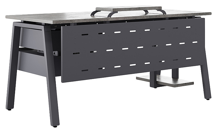 Компьютерный стол Кобор KA-160/80 graphite/chicago используется в офисных помещениях и кабинетах руководителей. Модель оснащена A-образными опорами. Каркас выполнен из металла, выкрашенного в цвет графит муар (RAL7024), столешница – из ламинированной древесно-стружечной плиты (ЛДСП) цвета бетон чикаго (F186 ST9). Опции (заказываются отдельно):