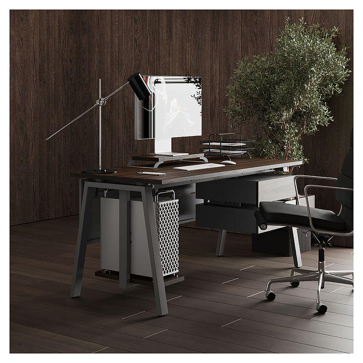Компьютерный стол Кобор KA-160/80 aluminum/charlston используется в офисных помещениях и кабинетах руководителей. Модель оснащена A-образными опорами. Каркас выполнен из металла, выкрашенного в цвет алюминиевый металлик (RAL9006), столешница – из ламинированной древесно-стружечной плиты (ЛДСП) цвета дуб чарльстон (H3154 ST36). Опции (заказываются отдельно):