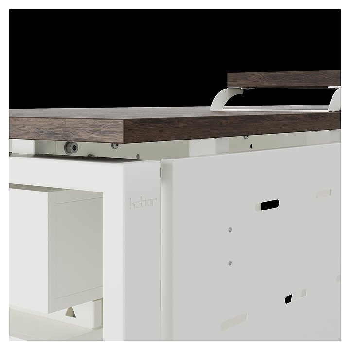Компьютерный стол Кобор KAB-100/80 white/charlston используется в офисных помещениях и кабинетах руководителей. Модель оснащена A-образными опорами со скошенными фронтальными сегментами. Каркас выполнен из металла, выкрашенного в цвет белый муар (RAL9016), столешница – из ламинированной древесно-стружечной плиты (ЛДСП) цвета дуб чарльстон (H3154 ST36). Опции (заказываются отдельно):