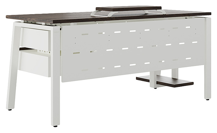 Компьютерный стол Кобор KAB-160/80 white/charlston используется в офисных помещениях и кабинетах руководителей. Модель оснащена A-образными опорами со скошенными фронтальными сегментами. Каркас выполнен из металла, выкрашенного в цвет белый муар (RAL9016), столешница – из ламинированной древесно-стружечной плиты (ЛДСП) цвета дуб чарльстон (H3154 ST36). Опции (заказываются отдельно):