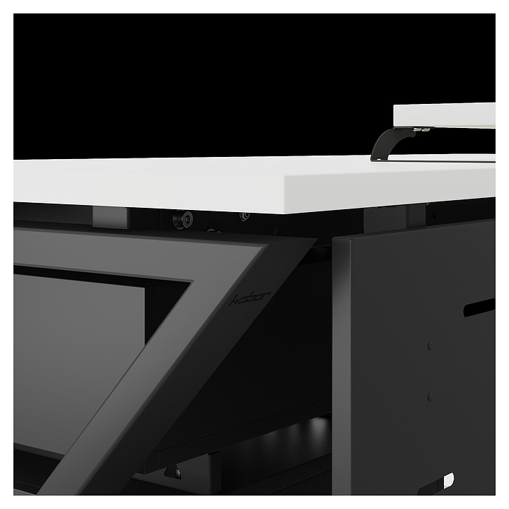Компьютерный стол Кобор KW-120/80 black/premium используется в офисных помещениях и кабинетах руководителей. Модель оснащена W-образными опорами. Каркас выполнен из металла, выкрашенного в цвет черный муар (RAL9005), столешница – из ламинированной древесно-стружечной плиты (ЛДСП) цвета белый премиум (W1000 S9). Опции (заказываются отдельно):