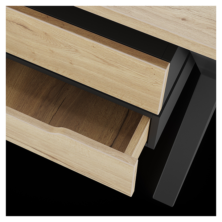 Компьютерный стол Кобор КW-100/60 black/natural используется в офисных помещениях и кабинетах руководителей. Модель оснащена W-образными опорами. Каркас выполнен из металла, выкрашенного в цвет черный муар (RAL9005), столешница – из ламинированной древесно-стружечной плиты (ЛДСП) цвета натуральный дуб (H1180 ST37). Опции (заказываются отдельно):