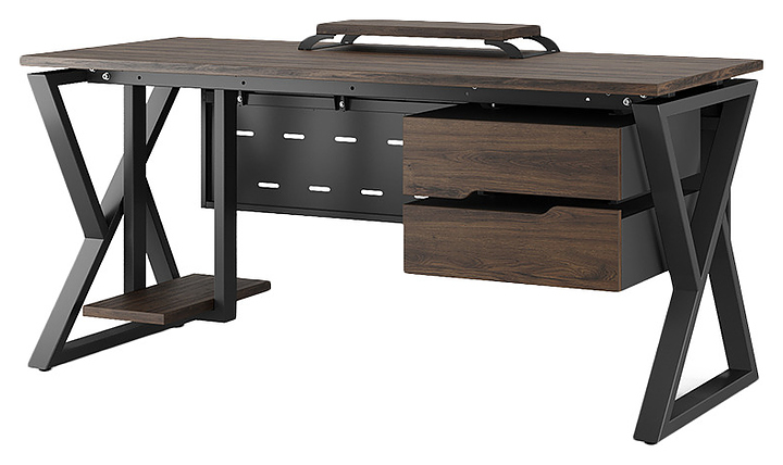 Компьютерный стол Кобор KW-120/80 black/charlston используется в офисных помещениях и кабинетах руководителей. Модель оснащена W-образными опорами. Каркас выполнен из металла, выкрашенного в цвет черный муар (RAL9005), столешница – из ламинированной древесно-стружечной плиты (ЛДСП) цвета дуб чарльстон (H3154 ST36). Опции (заказываются отдельно):