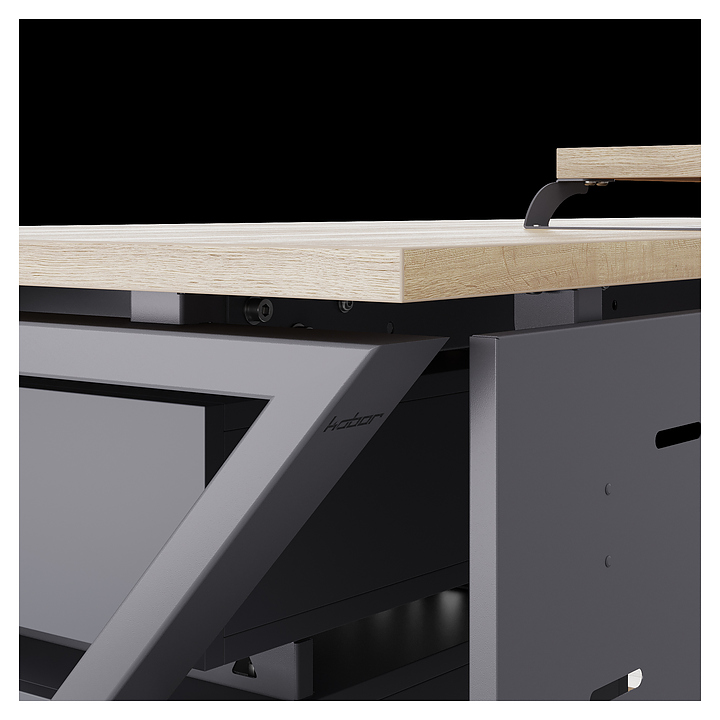 Компьютерный стол Кобор KW-180/80 graphite/natural используется в офисных помещениях и кабинетах руководителей. Модель оснащена W-образными опорами. Каркас выполнен из металла, выкрашенного в цвет графит муар (RAL7024), столешница – из ламинированной древесно-стружечной плиты (ЛДСП) цвета натуральный дуб (H1180 ST37). Опции (заказываются отдельно):