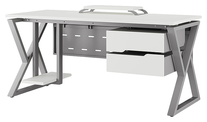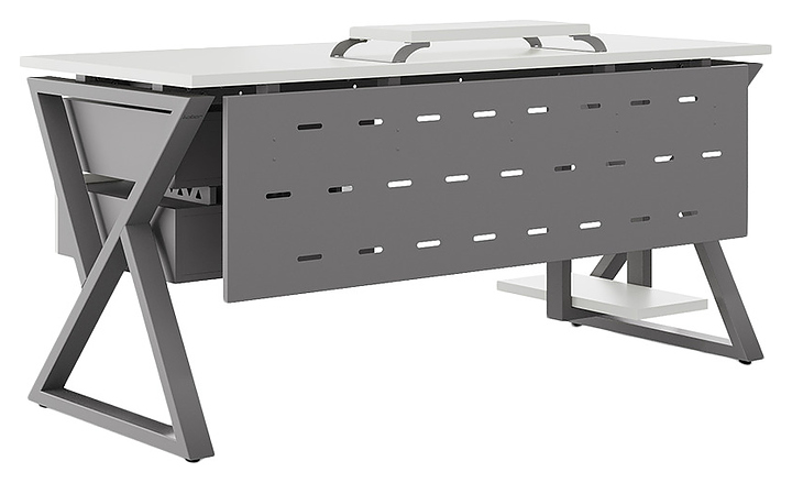Компьютерный стол Кобор КW-140/60 aluminum/premium используется в офисных помещениях и кабинетах руководителей. Модель оснащена W-образными опорами. Каркас выполнен из металла, выкрашенного в цвет алюминиевый металлик (RAL9006), столешница – из ламинированной древесно-стружечной плиты (ЛДСП) цвета белый премиум (W1000 ST9). Опции (заказываются отдельно):