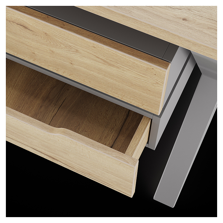 Компьютерный стол Кобор KW-180/70 aluminum/natural используется в офисных помещениях и кабинетах руководителей. Модель оснащена W-образными опорами. Каркас выполнен из металла, выкрашенного в цвет алюминиевый металлик (RAL9006), столешница – из ламинированной древесно-стружечной плиты (ЛДСП) цвета натуральный дуб (H1180 ST37). Опции (заказываются отдельно):