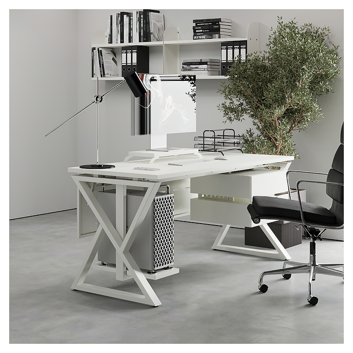Компьютерный стол Кобор KW-120/70 white/premium используется в офисных помещениях и кабинетах руководителей. Модель оснащена W-образными опорами. Каркас выполнен из металла, выкрашенного в цвет белый муар (RAL9016), столешница – из ламинированной древесно-стружечной плиты (ЛДСП) цвета белый премиум (W1000 ST9). Опции (заказываются отдельно):