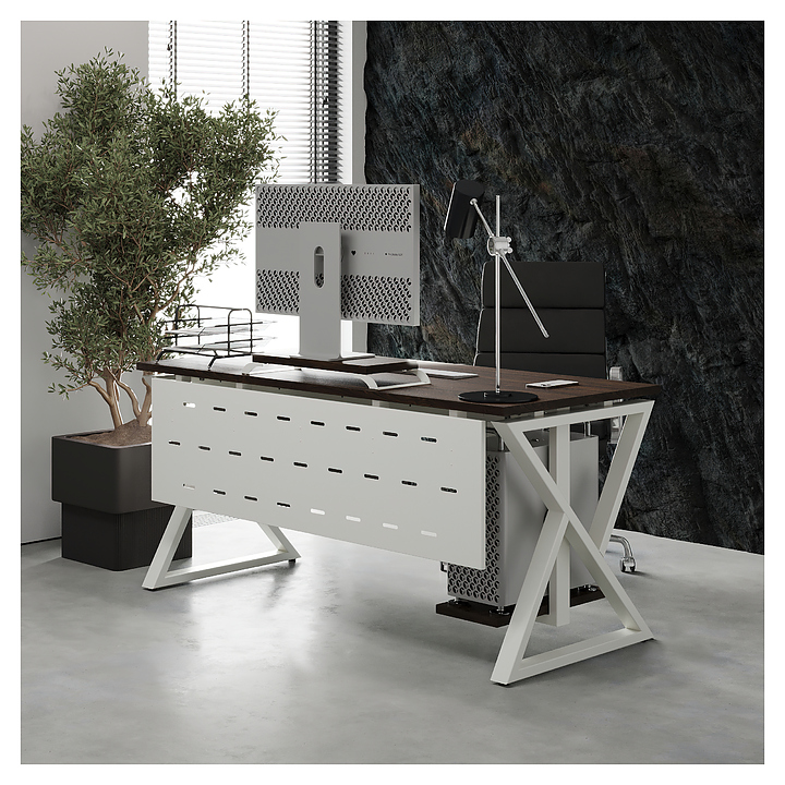 Компьютерный стол Кобор КW-120/70 white/charlston используется в офисных помещениях и кабинетах руководителей. Модель оснащена W-образными опорами. Каркас выполнен из металла, выкрашенного в цвет белый муар (RAL9016), столешница – из ламинированной древесно-стружечной плиты (ЛДСП) цвета дуб чарльстон (H3154 ST36). Опции (заказываются отдельно):