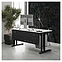 Компьютерный стол Кобор KL1-160/60 black/premium используется в офисных помещениях и кабинетах руководителей. Модель оснащена L-образными опорами. Каркас выполнен из металла, выкрашенного в цвет черный муар (RAL9005), столешница – из ламинированной древесно-стружечной плиты (ЛДСП) цвета белый премиум (W1000 S9). Опции (заказываются отдельно):