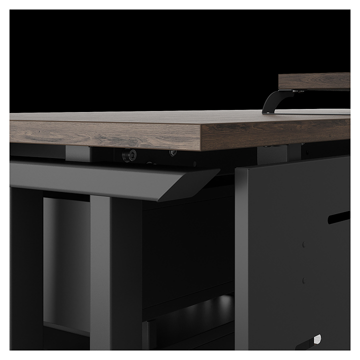 Компьютерный стол Кобор КL1-180/80 black/charlston используется в офисных помещениях и кабинетах руководителей. Модель оснащена L-образными опорами. Каркас выполнен из металла, выкрашенного в цвет черный муар (RAL9005), столешница – из ламинированной древесно-стружечной плиты (ЛДСП) цвета дуб чарльстон (H3154 ST36). Опции (заказываются отдельно):