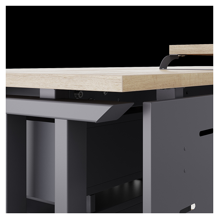 Компьютерный стол Кобор KL1-100/70 graphite/natural используется в офисных помещениях и кабинетах руководителей. Модель оснащена L-образными опорами. Каркас выполнен из металла, выкрашенного в цвет графит муар (RAL7024), столешница – из ламинированной древесно-стружечной плиты (ЛДСП) цвета натуральный дуб (H1180 ST37). Опции (заказываются отдельно):