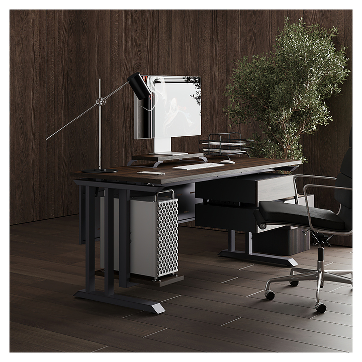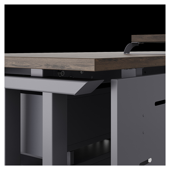 Компьютерный стол Кобор KL1-180/80 graphite/charlston используется в офисных помещениях и кабинетах руководителей. Модель оснащена L-образными опорами. Каркас выполнен из металла, выкрашенного в цвет графит муар (RAL7024), столешница – из ламинированной древесно-стружечной плиты (ЛДСП) цвета дуб чарльстон (H3154 ST36). Опции (заказываются отдельно):