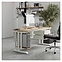 Компьютерный стол Кобор КL1-80/80 white/natural используется в офисных помещениях и кабинетах руководителей. Модель оснащена L-образными опорами. Каркас выполнен из металла, выкрашенного в цвет белый муар (RAL9016), столешница – из ламинированной древесно-стружечной плиты (ЛДСП) цвета натуральный дуб (H1180 ST37). Опции (заказываются отдельно):