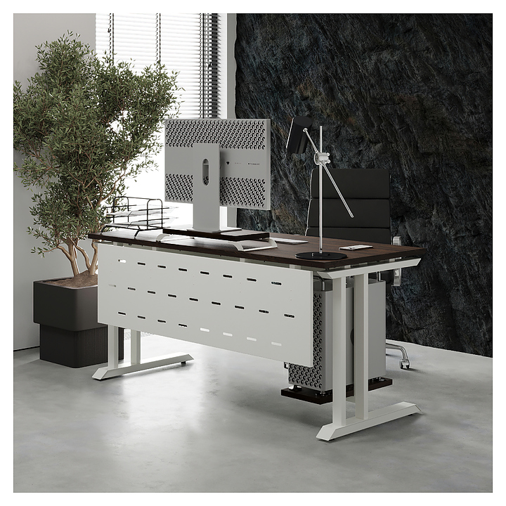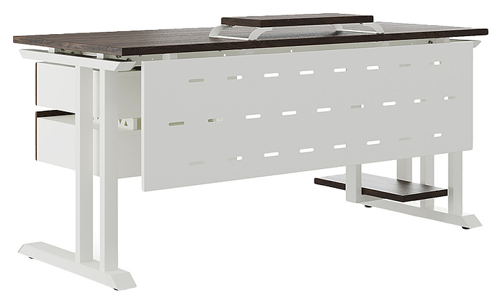 Компьютерный стол Кобор КL1-180/60 white/charlston используется в офисных помещениях и кабинетах руководителей. Модель оснащена L-образными опорами. Каркас выполнен из металла, выкрашенного в цвет белый муар (RAL9016), столешница – из ламинированной древесно-стружечной плиты (ЛДСП) цвета дуб чарльстон (H3154 ST36). Опции (заказываются отдельно):
