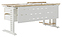 Компьютерный стол Кобор КL2-140/60 white/natural используется в офисных помещениях и кабинетах руководителей. Модель оснащена L-образными опорами с декоративными вставками на боковинах. Каркас выполнен из металла, выкрашенного в цвет белый муар (RAL9016), столешница – из ламинированной древесно-стружечной плиты (ЛДСП) цвета натуральный дуб (H1180 ST37). Опции (заказываются отдельно):