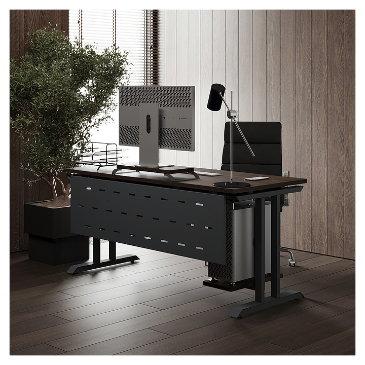 Компьютерный стол Кобор КT-120/80 black/charlston используется в офисных помещениях и кабинетах руководителей. Модель оснащена T-образными опорами. Каркас выполнен из металла, выкрашенного в цвет черный муар (RAL9005), столешница – из ламинированной древесно-стружечной плиты (ЛДСП) цвета дуб чарльстон (H3154 ST36). Опции (заказываются отдельно):