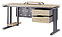 Компьютерный стол Кобор KT-100/60 graphite/natural используется в офисных помещениях и кабинетах руководителей. Модель оснащена T-образными опорами. Каркас выполнен из металла, выкрашенного в цвет графит муар (RAL7024), столешница – из ламинированной древесно-стружечной плиты (ЛДСП) цвета натуральный дуб (H1180 ST37). Опции (заказываются отдельно):