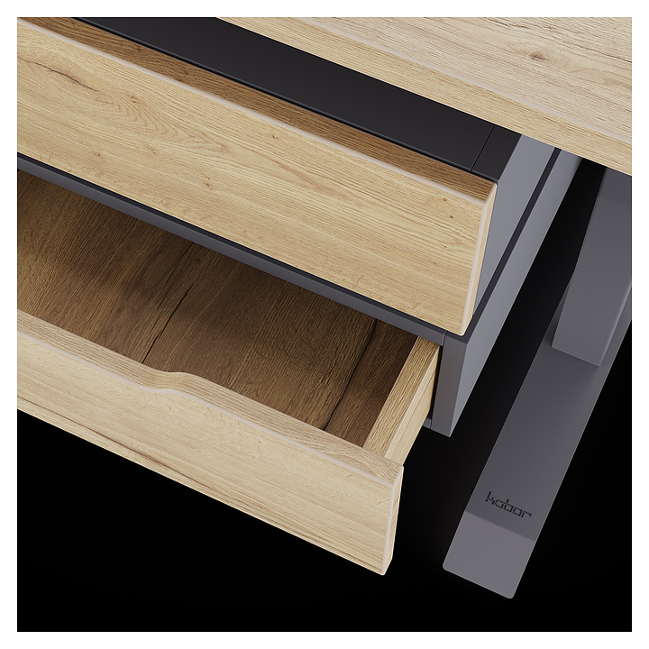Компьютерный стол Кобор КT-80/80 graphite/natural используется в офисных помещениях и кабинетах руководителей. Модель оснащена T-образными опорами. Каркас выполнен из металла, выкрашенного в цвет графит муар (RAL7024), столешница – из ламинированной древесно-стружечной плиты (ЛДСП) цвета натуральный дуб (H1180 ST37). Опции (заказываются отдельно):