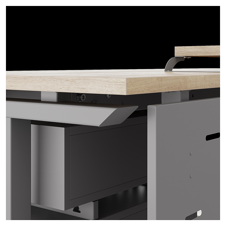 Компьютерный стол Кобор KT-140/60 aluminum/natural используется в офисных помещениях и кабинетах руководителей. Модель оснащена T-образными опорами. Каркас выполнен из металла, выкрашенного в цвет алюминиевый металлик (RAL9006), столешница – из ламинированной древесно-стружечной плиты (ЛДСП) цвета натуральный дуб (H1180 ST37). Опции (заказываются отдельно):
