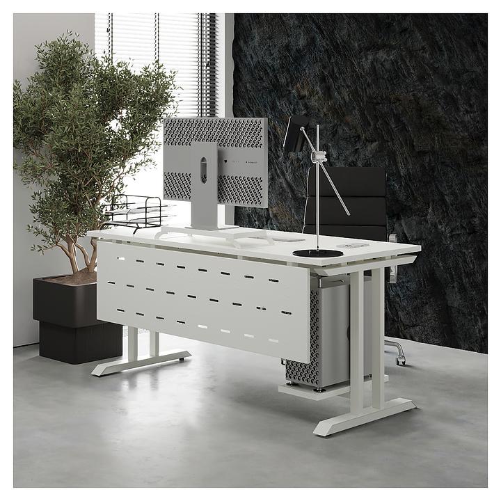 Компьютерный стол Кобор КT-120/70 white/premium используется в офисных помещениях и кабинетах руководителей. Модель оснащена T-образными опорами. Каркас выполнен из металла, выкрашенного в цвет белый муар (RAL9016), столешница – из ламинированной древесно-стружечной плиты (ЛДСП) цвета белый премиум (W1000 ST9). Опции (заказываются отдельно):
