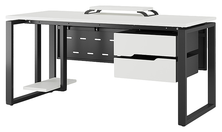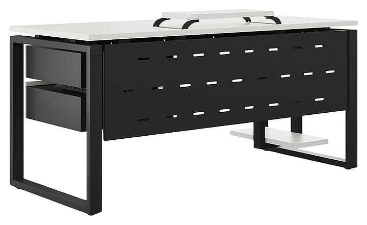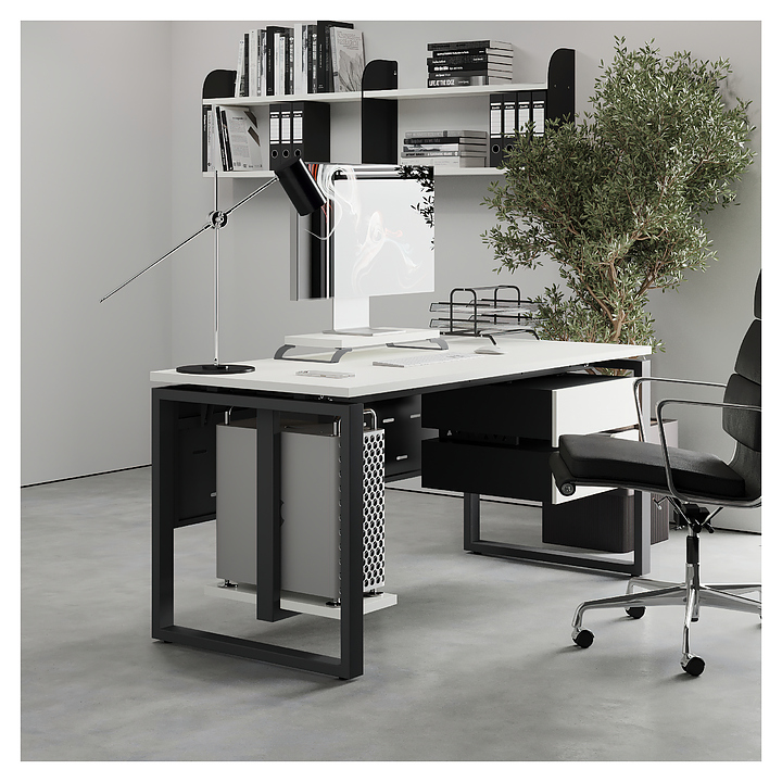 Компьютерный стол Кобор КO1-120/70 black/premium используется в офисных помещениях и кабинетах руководителей. Модель оснащена O-образными опорами. Каркас выполнен из металла, выкрашенного в цвет черный муар (RAL9005), столешница – из ламинированной древесно-стружечной плиты (ЛДСП) цвета белый премиум (W1000 S9). Опции (заказываются отдельно):