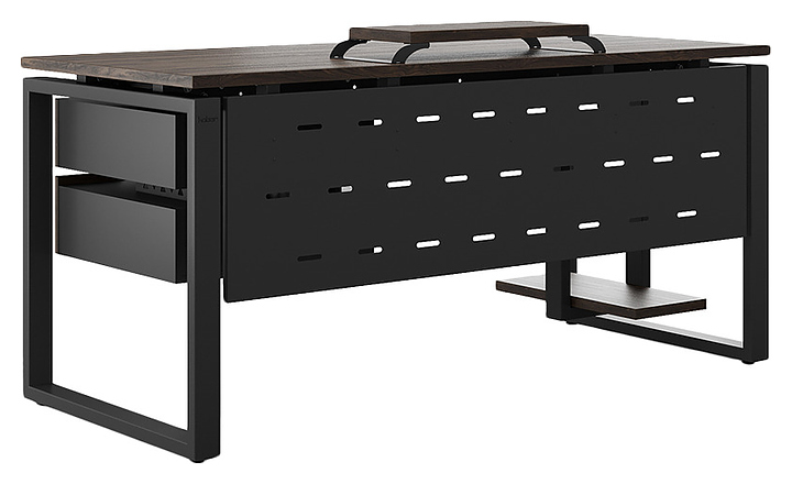 Компьютерный стол Кобор КO1-160/80 black/charlston используется в офисных помещениях и кабинетах руководителей. Модель оснащена O-образными опорами. Каркас выполнен из металла, выкрашенного в цвет черный муар (RAL9005), столешница – из ламинированной древесно-стружечной плиты (ЛДСП) цвета дуб чарльстон (H3154 ST36). Опции (заказываются отдельно):