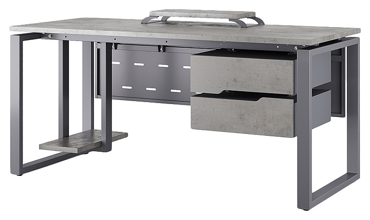 Компьютерный стол Кобор KO1-180/70 graphite/chicago используется в офисных помещениях и кабинетах руководителей. Модель оснащена O-образными опорами. Каркас выполнен из металла, выкрашенного в цвет графит муар (RAL7024), столешница – из ламинированной древесно-стружечной плиты (ЛДСП) цвета бетон чикаго (F186 ST9). Опции (заказываются отдельно):