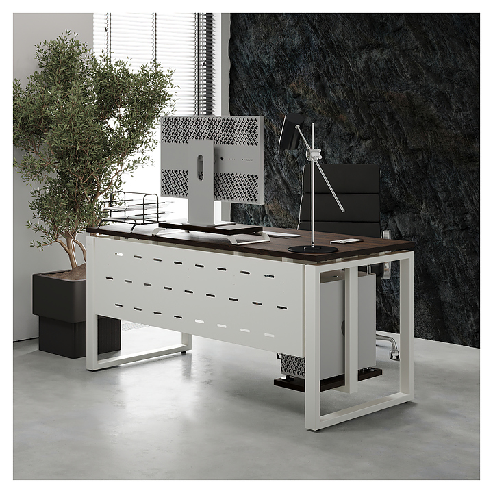 Компьютерный стол Кобор КO1-160/60 white/charlston используется в офисных помещениях и кабинетах руководителей. Модель оснащена O-образными опорами. Каркас выполнен из металла, выкрашенного в цвет белый муар (RAL9016), столешница – из ламинированной древесно-стружечной плиты (ЛДСП) цвета дуб чарльстон (H3154 ST36). Опции (заказываются отдельно):