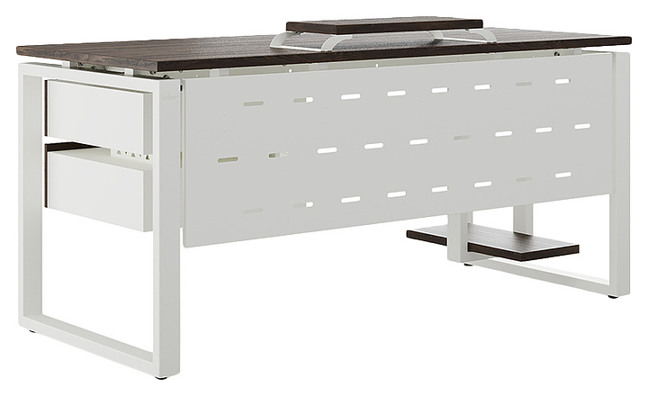 Компьютерный стол Кобор КO1-120/70 white/charlston используется в офисных помещениях и кабинетах руководителей. Модель оснащена O-образными опорами. Каркас выполнен из металла, выкрашенного в цвет белый муар (RAL9016), столешница – из ламинированной древесно-стружечной плиты (ЛДСП) цвета дуб чарльстон (H3154 ST36). Опции (заказываются отдельно):