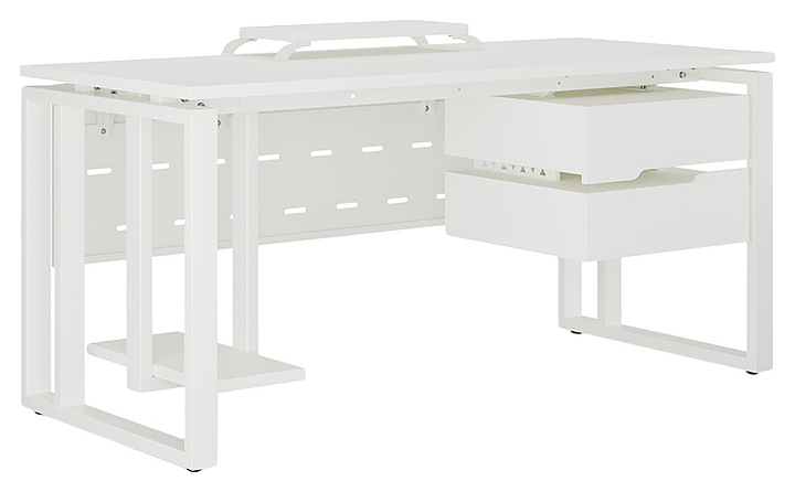 Компьютерный стол Кобор KO2-120/60 white/premium используется в офисных помещениях и кабинетах руководителей. Модель оснащена усиленными вертикальной балкой O-образными опорами. Каркас выполнен из металла, выкрашенного в цвет белый муар (RAL9016), столешница – из ламинированной древесно-стружечной плиты (ЛДСП) цвета белый премиум (W1000 ST9). Опции (заказываются отдельно):