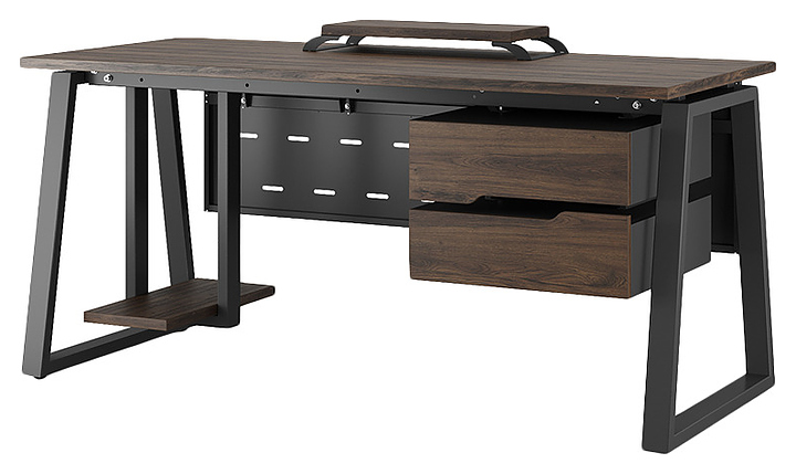 Компьютерный стол Кобор KTR-160/70 black/charlston используется в офисных помещениях и кабинетах руководителей. Модель оснащена опорами в форме трапеции. Каркас выполнен из металла, выкрашенного в цвет черный муар (RAL9005), столешница – из ламинированной древесно-стружечной плиты (ЛДСП) цвета дуб чарльстон (H3154 ST36). Опции (заказываются отдельно):