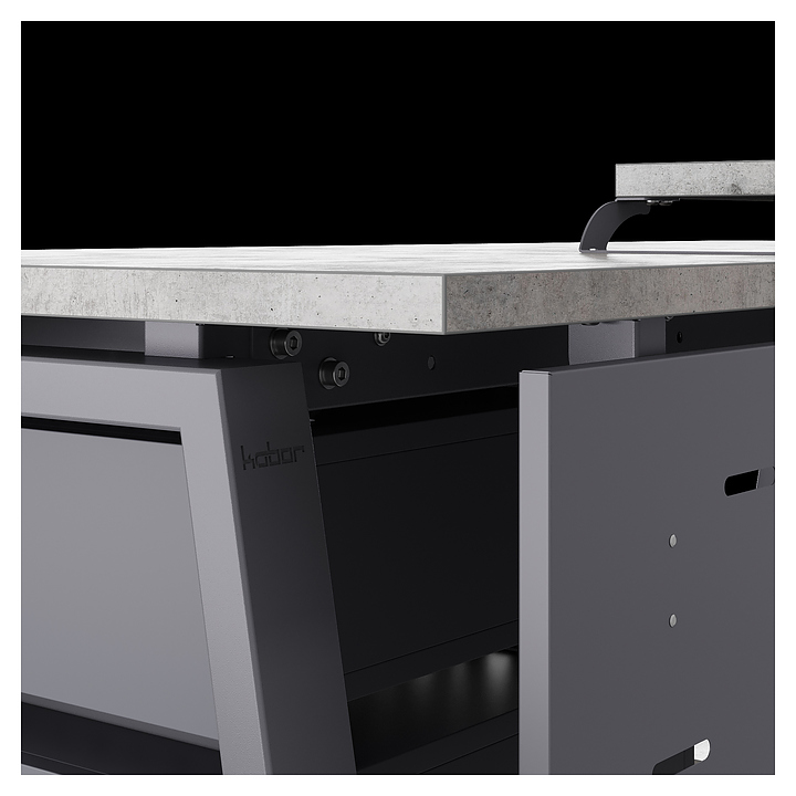 Компьютерный стол Кобор КTR-160/80 graphite/chicago используется в офисных помещениях и кабинетах руководителей. Модель оснащена опорами в форме трапеции. Каркас выполнен из металла, выкрашенного в цвет графит муар (RAL7024), столешница – из ламинированной древесно-стружечной плиты (ЛДСП) цвета бетон чикаго (F186 ST9). Опции (заказываются отдельно):
