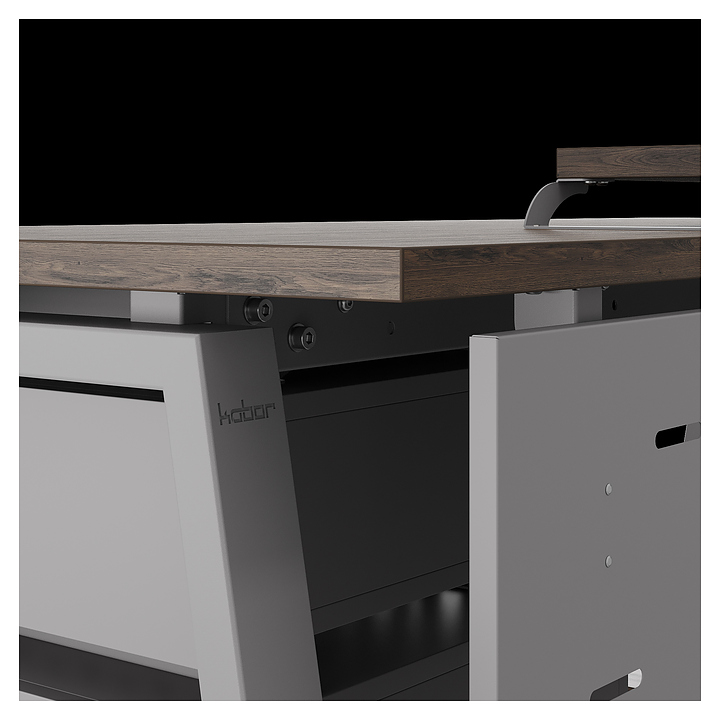 Компьютерный стол Кобор КTR-100/70 aluminum/charlston используется в офисных помещениях и кабинетах руководителей. Модель оснащена опорами в форме трапеции. Каркас выполнен из металла, выкрашенного в цвет алюминиевый металлик (RAL9006), столешница – из ламинированной древесно-стружечной плиты (ЛДСП) цвета дуб чарльстон (H3154 ST36). Опции (заказываются отдельно):