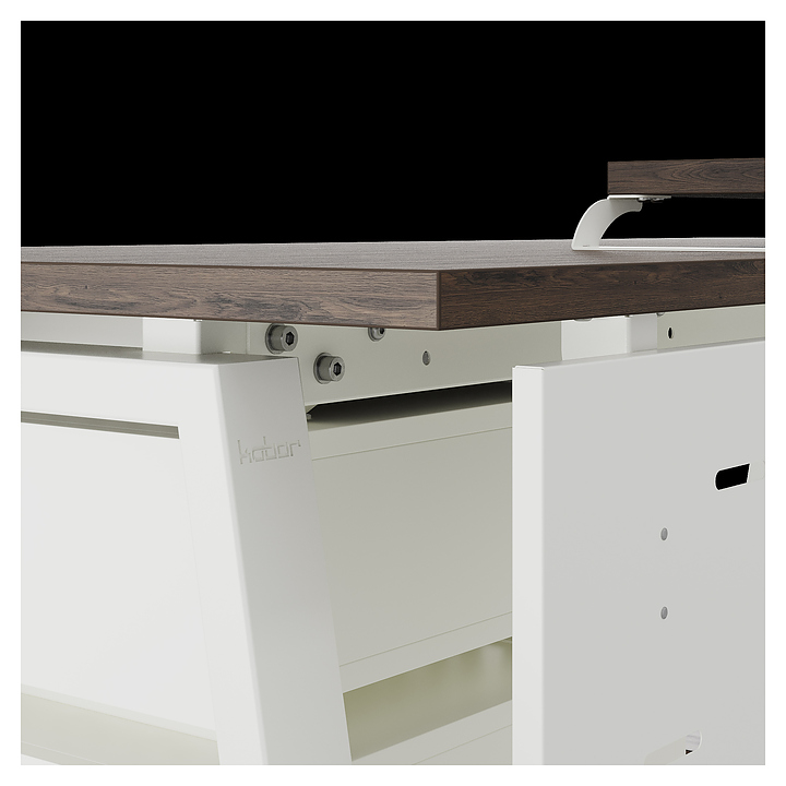 Компьютерный стол Кобор KTR-160/60 white/charlston используется в офисных помещениях и кабинетах руководителей. Модель оснащена опорами в форме трапеции. Каркас выполнен из металла, выкрашенного в цвет белый муар (RAL9016), столешница – из ламинированной древесно-стружечной плиты (ЛДСП) цвета дуб чарльстон (H3154 ST36). Опции (заказываются отдельно):